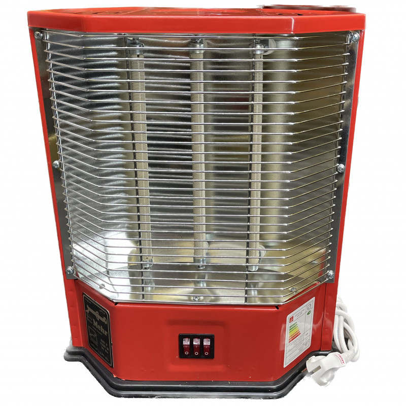 بخاری برقی ایستاده مهر MEHR مدل تویوست Toyoset با حداکثر توان 1500 وات به شکل کلاسیک و ساده با رده انرژی A و مصرف کم انرژی همراه با بازده حرارتی بالا طراحی شده است تا محیطی گرم و مطبوع را در فصول سرد سال برای شما ایجاد کند. این دستگاه دارای 3 المنت سرامیکی یا سیم پیچ فلزی است که با داغ و سرخ شدن سیم پیچ ها تولید حرارت می کند و به دلیل نداشتن شعله حتی در مکان هایی با تهویه نامناسب نیز می توان بدون کاهش میزان اکسیژن گرمای مطلوب و مناسب را ایجاد نمود. بخاری ایستاده تویوست مهر دارای پنل با سه کلید کنترلی و چراغ نشانگر داخلی روی بدنه دستگاه می باشد که جهت روشن و خاموش کردن المنت های بالا، پایین و وسط بطور مجزا کاربرد دارد. صفحه فلزی به کار رفته بعنوان منعکس کننده نور و حرارت در پس زمینه المنت ها موجب کارایی و بازده حرارتی بیشتر دستگاه گردیده و فضای وسیع تری را گرم می کند. این بخاری برقی مجهز به کلید ایمنی قطع کن اتوماتیک است که زیر بدنه دستگاه تعبیه شده تا در صورت واژگون شدن احتمالی وسیله بطور خودکار آن را خاموش کرده و از بروز خطر آتش سوزی جلوگیری گردد.