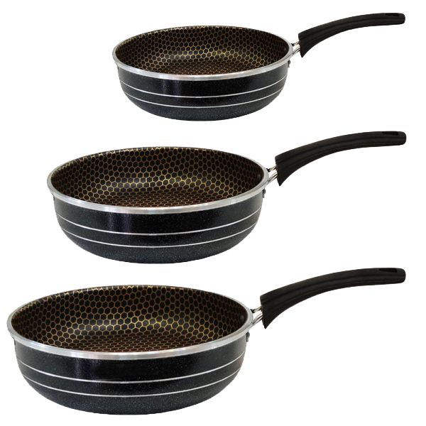 سرویس موجود شامل 3 تابه در سایزهای 20 و 24 و 28 می باشد (منظور از سایز قطر دهانه ی تابه می باشد.) ساخته شده از آلومینیوم با کیفیت بالا که با روکش گرانیتی طرح کندویا زنبوری نچسب پوشانده شده است. قطر ورق بدنه از ضخامت بالایی برخوردار است که طبخ انواع غذا را فراهم میکند. دارای لبه های برجسته (طرح چدن) می باشد که هم کیفیت محصول را بالا برده و هم از نظر ظاهری به آن جلوه داده است