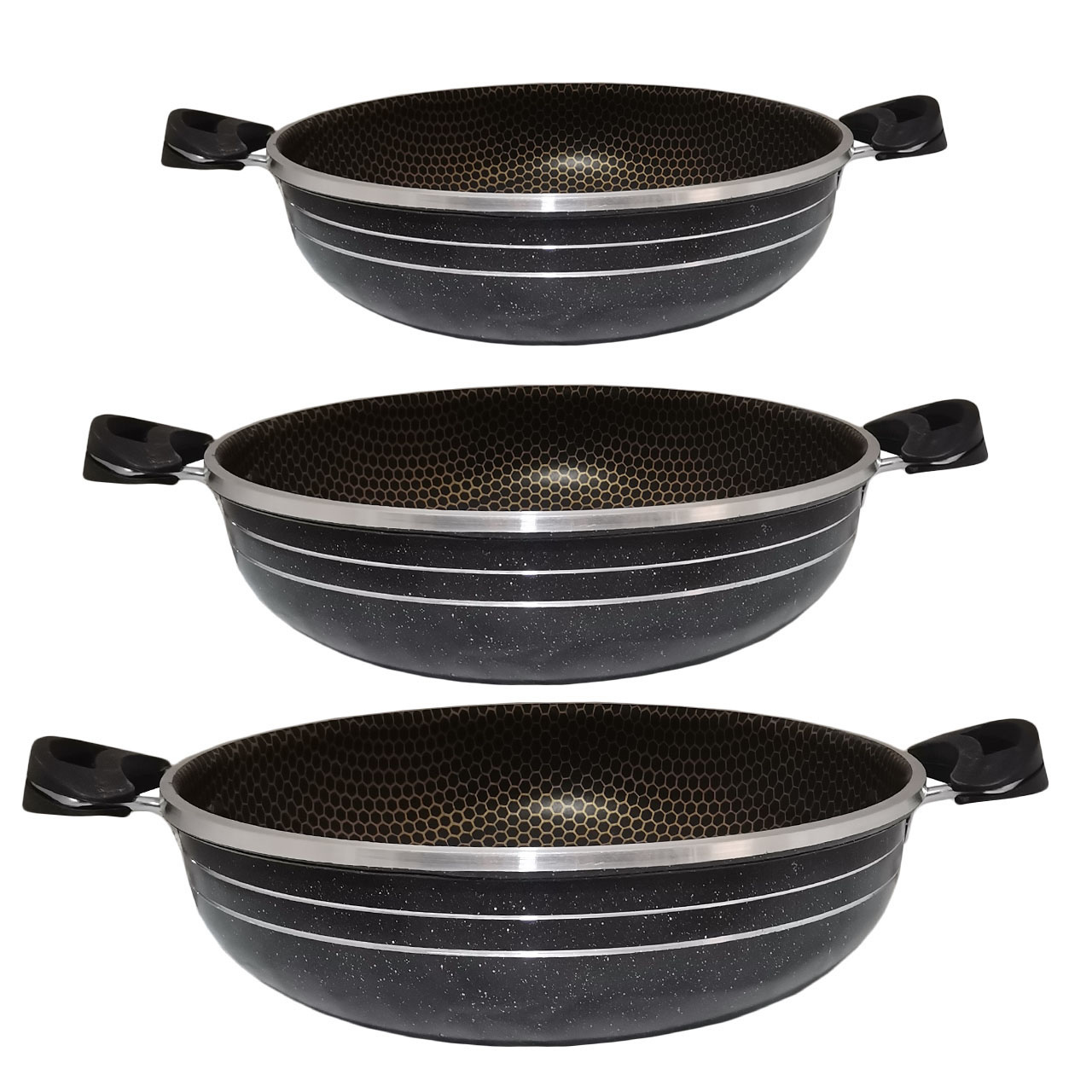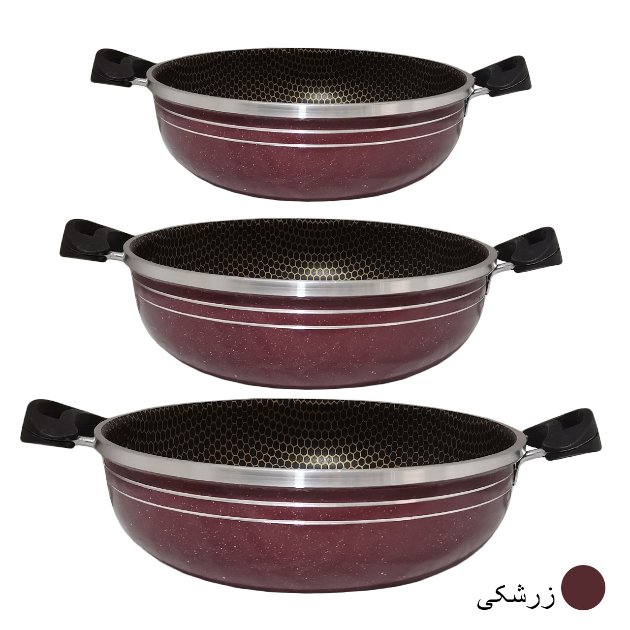 سرویس موجود شامل 3 تابه در سایزهای 20 و 24 و 28 می باشد (منظور از سایز قطر دهانه ی تابه می باشد.) ساخته شده از آلومینیوم با کیفیت بالا که با روکش گرانیتی نچسب پوشانده شده است. قطر ورق بدنه از ضخامت بالایی برخوردار است که طبخ انواع غذا را فراهم میکند. دارای لبه های برجسته (طرح چدن) می باشد که هم کیفیت محصول را بالا برده و هم از نظر ظاهری به آن جلوه داده است.