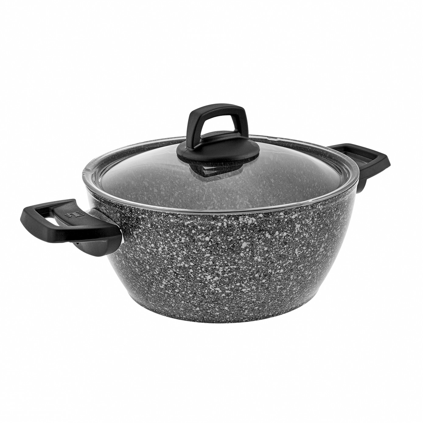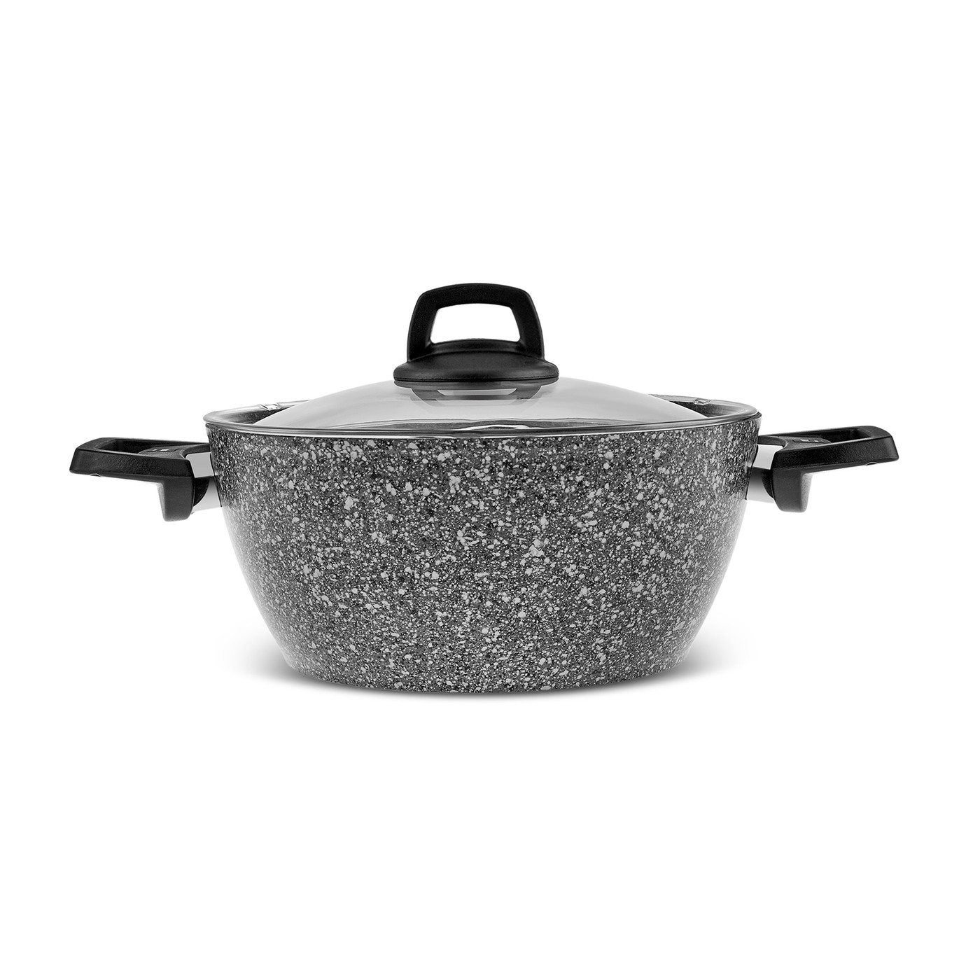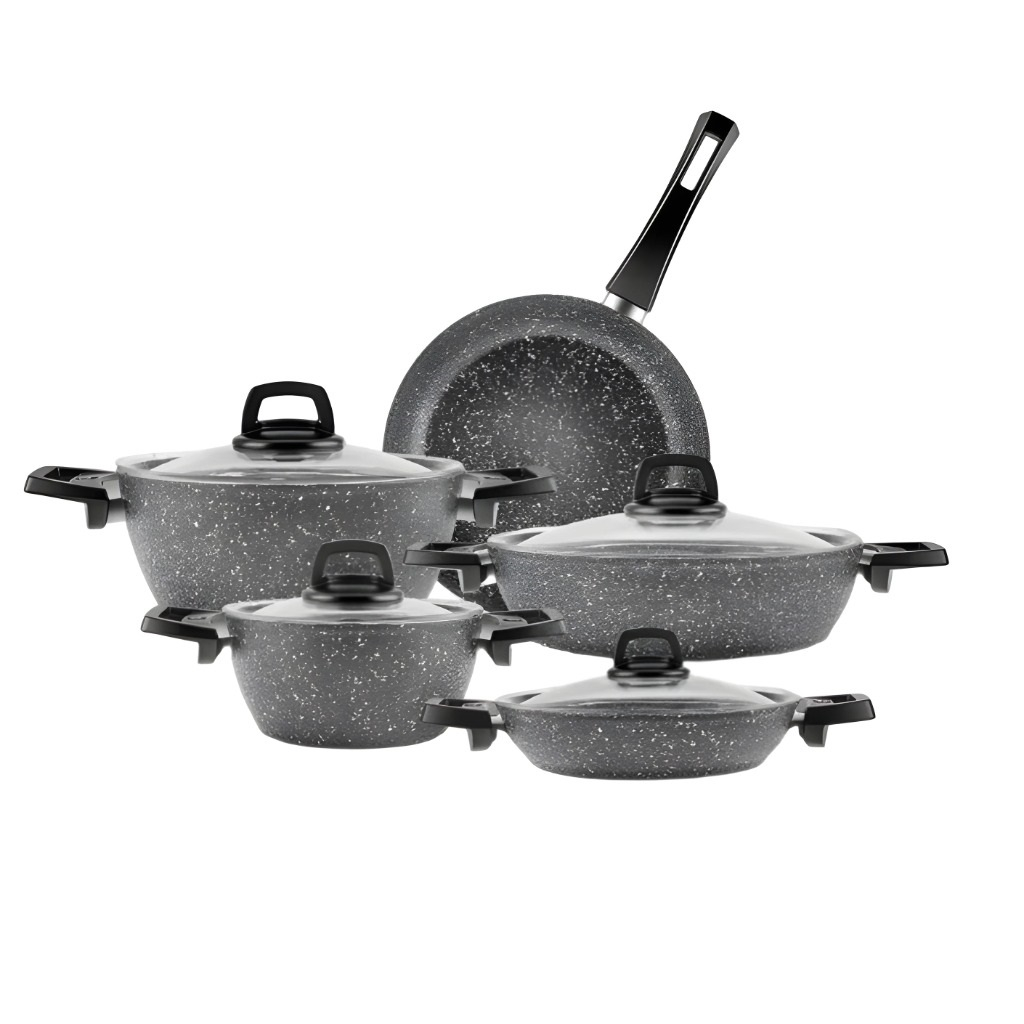**سرویس قابلمه ۹ پارچه کاراجا مدل Biogranit Grey Stone** شامل قابلمه عمیق ۱۸ و ۲۴ سانتیمتری، قابلمه کارنییاریک ۲۶ سانتیمتری، تابه ۲۰ و ۲۶ سانتیمتری است. این محصول با کیفیت ساخت ترکیه، از جنس بیوگرانیت با **پوشش ۶ لایه** منحصربهفرد تولید شده که شامل لایههای نچسب، گرانیتی، آلومینیومی و مقاوم در برابر خراش است. این سرویس **۷ برابر بیشتر از محصولات مشابه** در برابر خط و خش مقاومت دارد و با توزیع یکنواخت حرارت، پختوپز را آسانتر میکند. دستگیرههای ارگونومیک، سطح نچسب داخلی و خارجی بدون لکه، قابلیت شستشو در ماشین ظرفشویی و دوام بالا از دیگر مزایای این مجموعه است که آن را به انتخابی ایدهآل برای آشپزخانههای مدرن تبدیل کرده است.