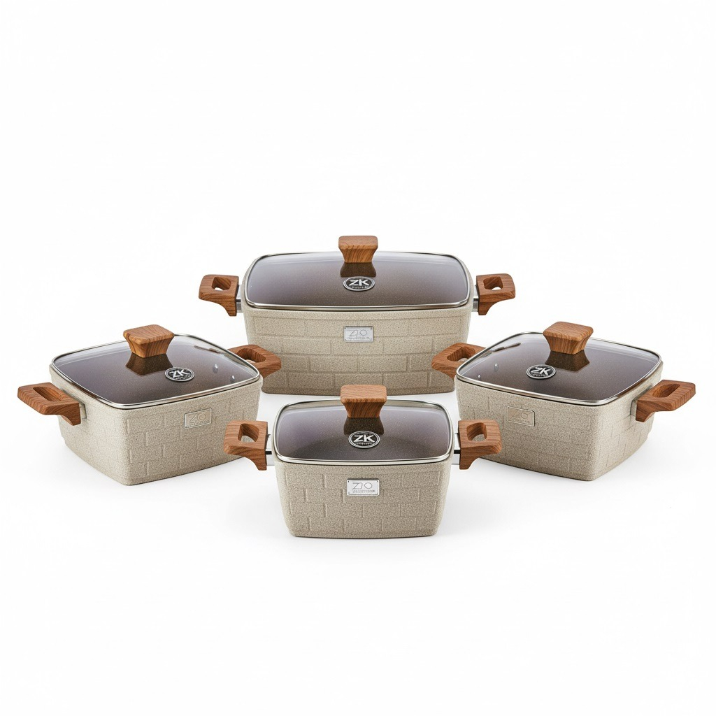 سرویس قابلمه ۱۰ پارچه زیو مدل ZCS-8560 یک انتخاب شیک و کاربردی برای آشپزخانههای مدرن است. این سرویس شامل چهار قابلمه در سایزهای ۲۰، ۲۴، ۲۸ و ۳۲ سانتیمتر به همراه یک تابه دو دسته ۲۸ سانتیمتری با درب پیرکس مقاوم است. بدنه ضخیم آلومینیومی با کفی چندلایه، حرارت را بهطور یکنواخت منتقل میکند و پوشش گرانیت ماربل نچسب، پخت سالم و تمیزکردن آسان را تضمین مینماید. دستههای باکالیت نسوز، دربهای پیرکس مجهز به سوپاپ بخار و واشر سیلیکونی، ایمنی و راحتی بیشتری در هنگام آشپزی ایجاد میکنند. طراحی مربعی و طرح آجری خاص این محصول، جلوهای زیبا و متفاوت به آشپزخانه میبخشد. این سرویس فاقد مواد مضر مانند PFOA، سرب و کادمیوم بوده و انتخابی مناسب برای پختوپز سالم خانواده است؛