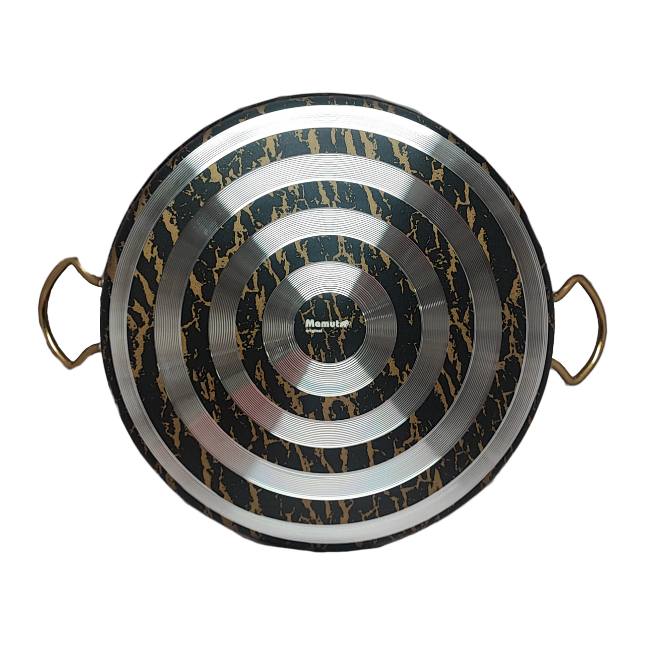 سرویس12 پارچه ماموت مدل سنگی ی سرویس بسیار عالی برای پخت پز است این سرویس دارای رنگ های مشکی کرم و طوسی است که به اشپزخانه شما قشنگی می بخشد این سرویس دارای 2 دسته سلکونی2 کفگیر و انبر و پیشبند است که به صورت هدیه به شما ها ارسال میشه بدنه این تابه از المینوم و روکش گرانیتی با کیفت استفاده شده که اشپزی برای شما ها لذت بخش میکند