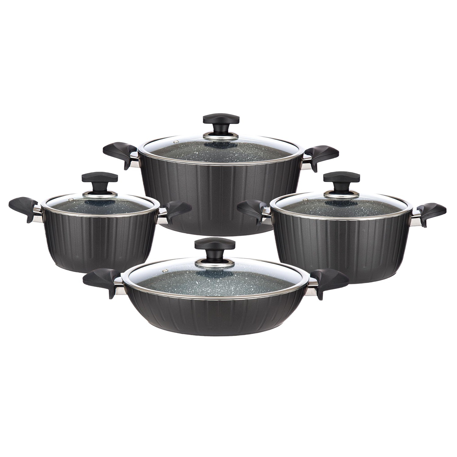 شامل قابلمه 20 و قابلمه 24 و قابلمه 28 به همراه تابه دودسته 28 ، این محصول یکی دیگر از محصولات با کیفیت شرکت عروس می باشد و جنس بدنه آن ساخته شده از آلومینیوم خالص است و دستگیره های آن از باکالیت نسوز می باشد