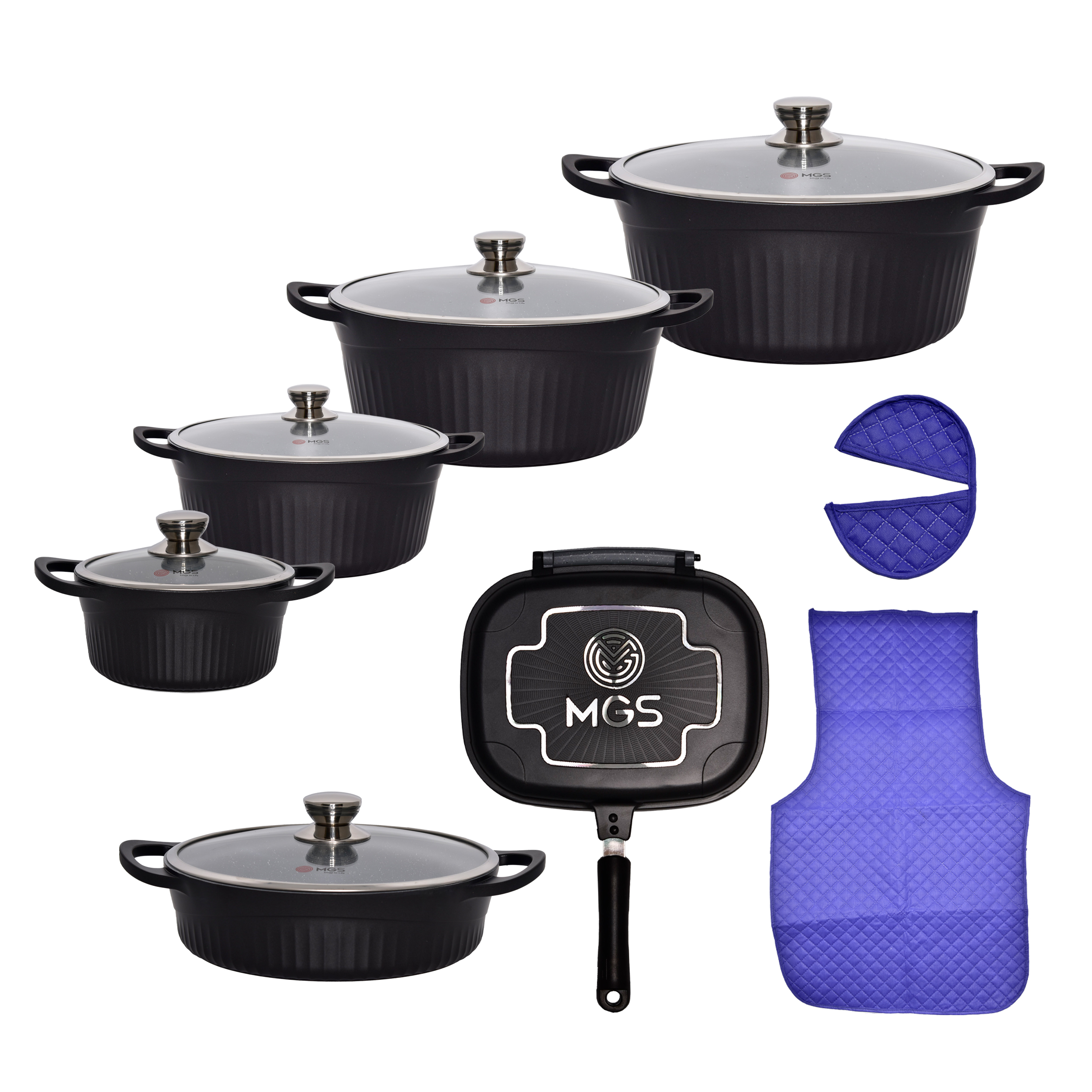 برای هر نوع پخت و پز، از یک وعده ساده روزانه تا یک مهمانی بزرگ، سرویس پخت و پز 15 پارچه ام جی اس مدل جرمنی D همراه شماست. این مجموعه کامل شامل چهار قابلمه در سایزهای کاربردی، یک تابه دو دسته و یک تابه دوطرفه رژیمی است. اقلام جانبی مانند دستگیره و پیشبند نیز به راحتی و کارایی بیشتر در آشپزخانه کمک میکنند.