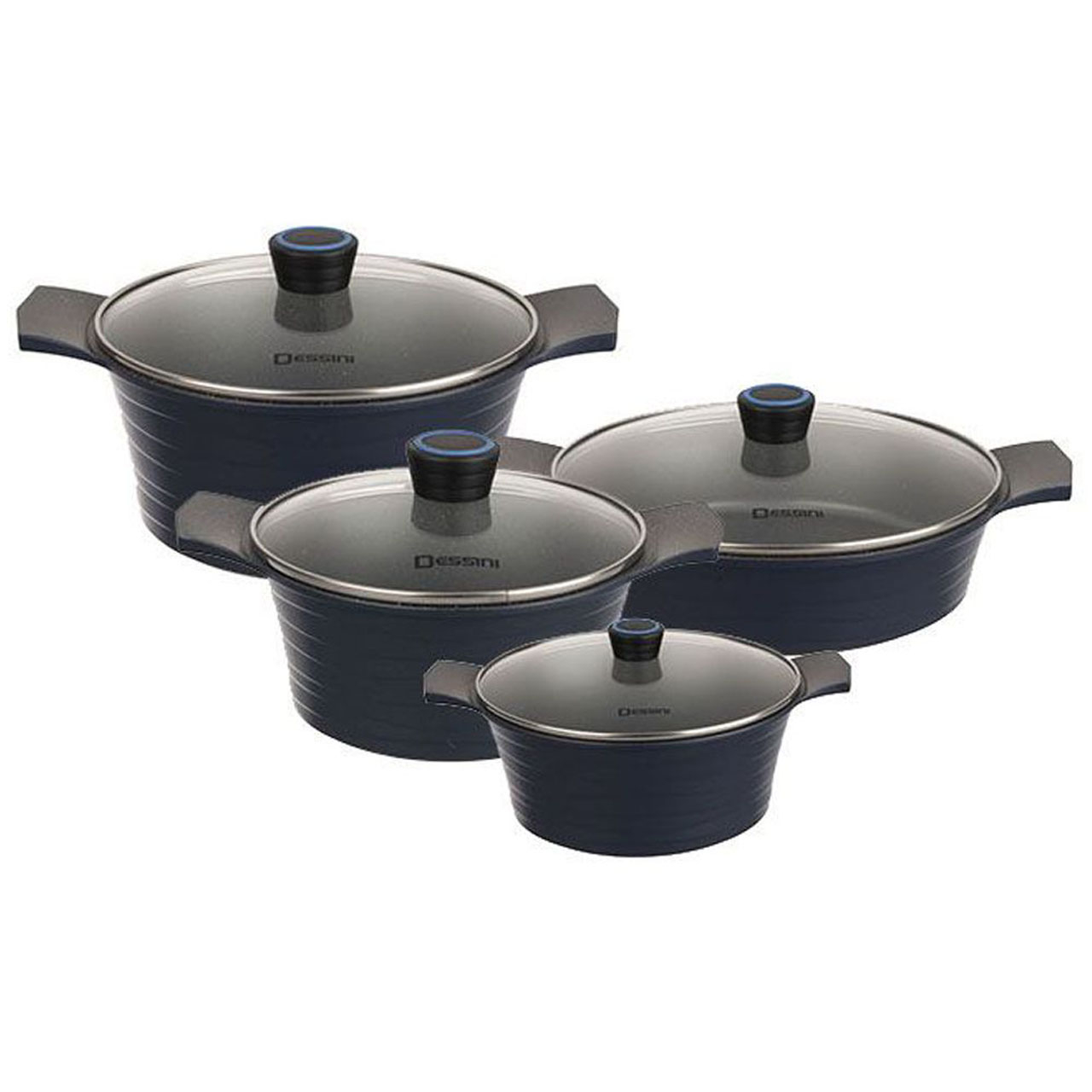 سرویس پخت و پز 8 پارچه دسینی در رنگهای مختلف برای فروش عرضه شده تا پاسخگوی سلایق مختلف باشد. جنس بدنه آن آلومینیومی است تا در زمان قرار گرفتن روی حرارت آسیب نبینند. این محصول تا حدود 200 درجه سانتیگراد تحمل حرارت را دارد. از این سرویس میتوانید داخل فر یا روی شعلههای گاز به شکل چندمنظوره استفاده کنید.