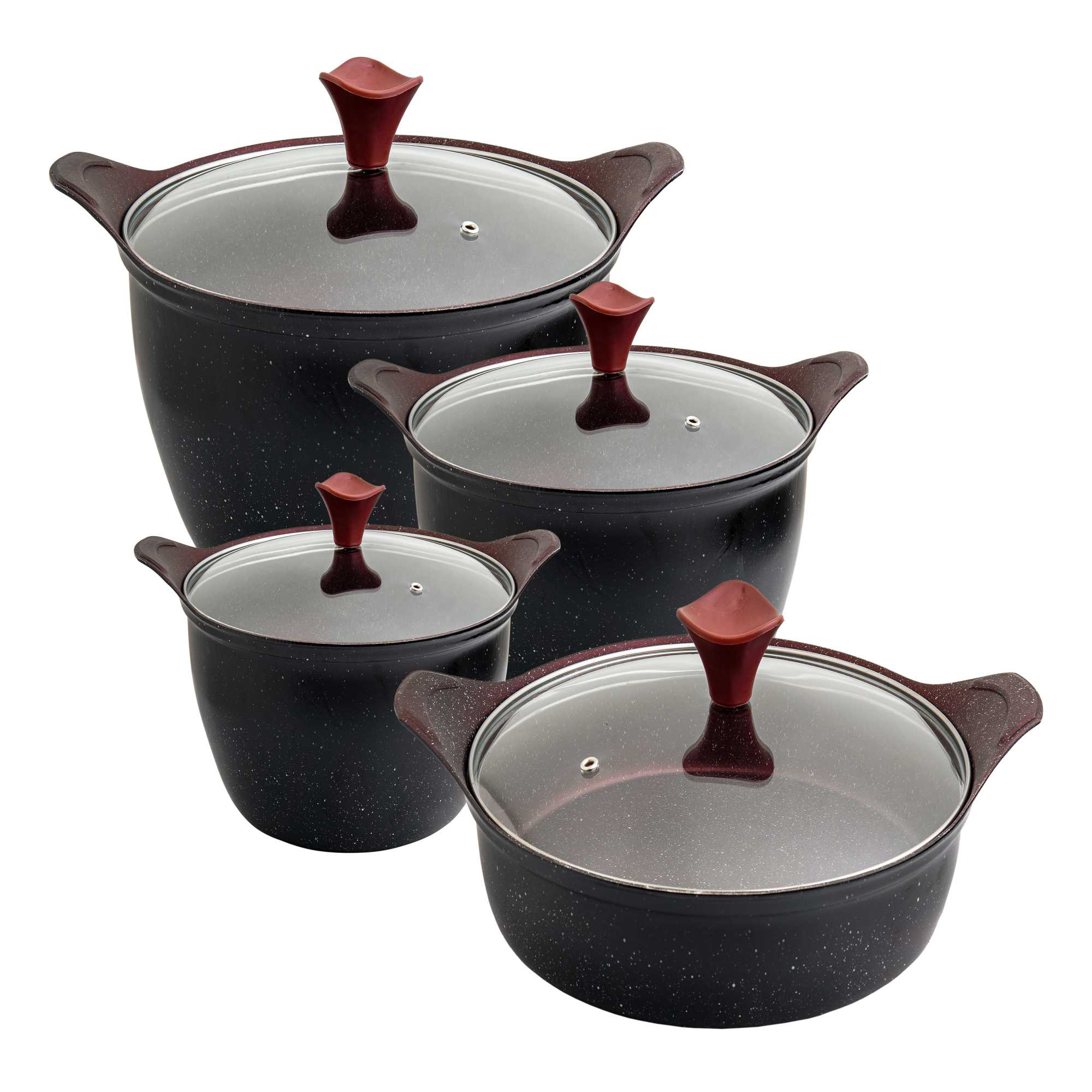 سرویس پخت و پز 8 پارچه فورج سورنا شامل 3 عدد قابلمه با سایز های 20 و 24 و 28 و یک عدد تابه سایز 28 که به صورت جداگانه داخل کارتن بسته بندی شده میباشد