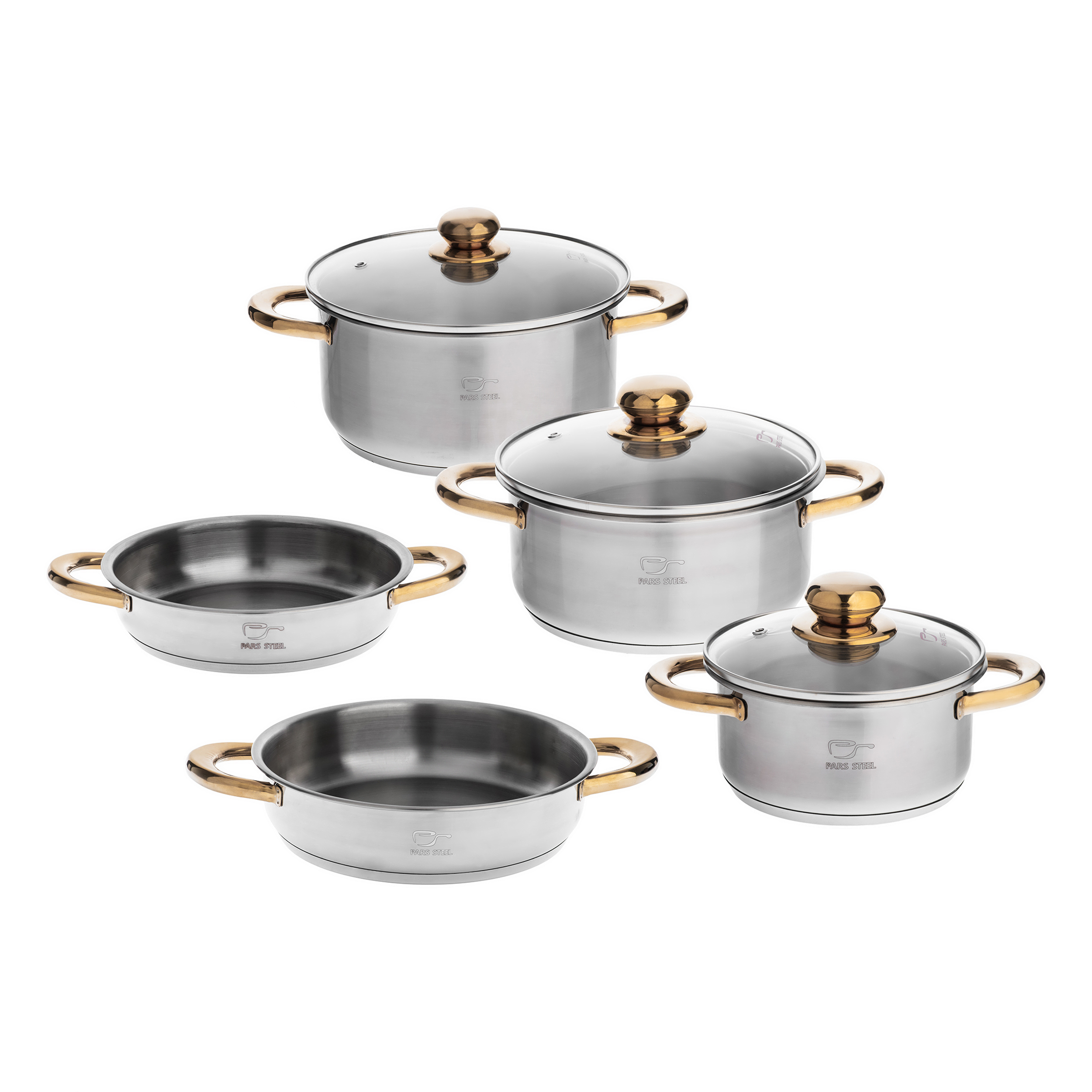 ویژگی کلیدی این ظروف، کفه سه لایه آنها است که حرارت را به صورت کاملاً یکنواخت در تمام سطح پخش کرده و از تهگرفتن یا سوختن موضعی غذا جلوگیری میکند. دستههای استیل که به صورت یکپارچه با بدنه طراحی شدهاند، علاوه بر زیبایی، استحکام و دوام بالایی را نیز به همراه دارند. این مجموعه ۸ پارچه شامل سه قابلمه و دو تابه دو دسته در سایزهای کاربردی است که نیازهای اصلی پخت و پز روزمره را پوشش میدهد و با انواع اجاق گاز سازگار است. در نهایت، سرویس پخت و پز پارس استیل مدل 001 برای خانوادههایی که به سلامت، دوام و کیفیت در آشپزی اهمیت میدهند، یک انتخاب بینقص و ماندگار است.