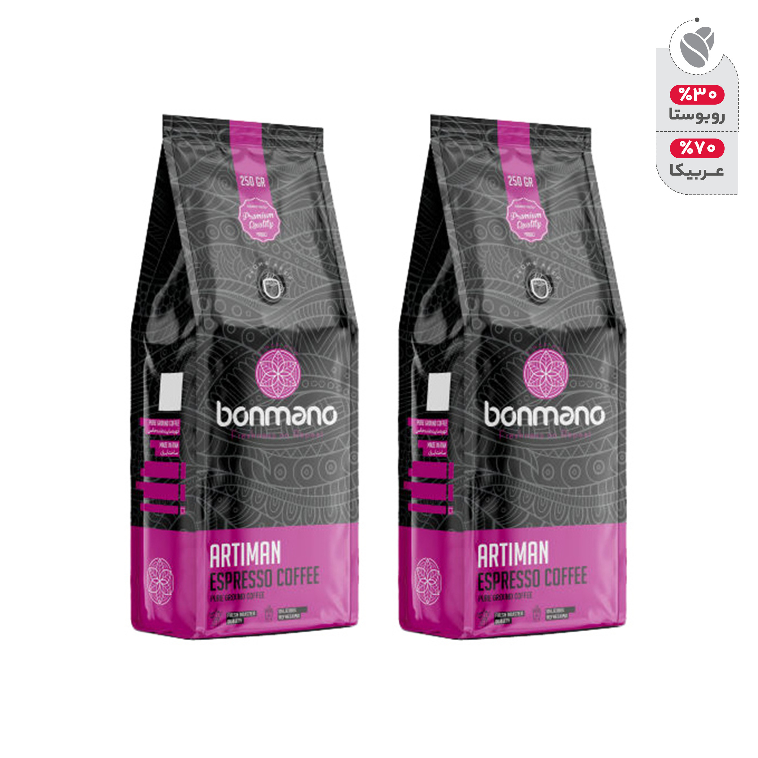 ویژگیهای قهوهی اسپرسوی آسیاشدهی آرتیمان: 70% دانههای قهوهی اسپرسوی آرتیمان عربیکا با خاستگاه لاتین و آفریقا بوده و 30% دیگر روبوستا با خاستگاه هند است. اسیدیتهی این قهوه ملایم و کف (Crema) آن بالا است. عطر و طعم پیچیدهی مرکباتی و کاکائویی این ترکیب قابل حس است.- Aroma Keep – مکانیزمی که با ممانعت از ورود هوا به داخل بستهبندی پایداری رایحهی قهوه را تضمین میکند.- MAP – بستهبندی در اتمسفر اصلاحشده در این تکنولوژی بستهبندی از اکسیدشدن قهوه جلوگیری شده و زمان ماندگاری بهطور قابل توجهی افزایش مییابد؛ لذا محصول تازه و معطر باقی میماند.- Fresh Roast: تمام دانههای قهوه تازهبرشت هستند.- Signature Blend: ترکیب اختصاصی بنمانو حاصل مشارکت و مشاورهی متخصصین جهانی است.